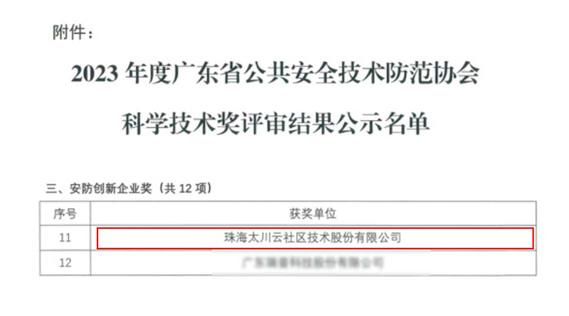 近日,在廣東省科學(xué)技術(shù)廳指導(dǎo)下,廣東省公共安全技術(shù)防范協(xié)會設(shè)立了“廣東省公共安全技術(shù)防范協(xié)會科學(xué)技術(shù)獎”。根據(jù)《廣東省公共安全技術(shù)防范協(xié)會科學(xué)技術(shù)獎管理辦法》規(guī)定,經(jīng)評審委員會評審,太川股份榮獲廣東省安防科學(xué)技術(shù)獎創(chuàng)新企業(yè)。