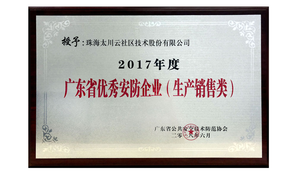6月9日,由廣東省公共安全技術(shù)防范協(xié)會舉辦的“2017年度廣東安防行業(yè)評優(yōu)頒獎典禮”在廣州陽光酒店隆重舉行。在歷經(jīng)數(shù)月的層層篩選之后,廣東省安防行業(yè)年度評優(yōu)結(jié)果隆重揭曉。太川股份憑借先進的技術(shù)研發(fā)實力及及創(chuàng)新的物聯(lián)網(wǎng)整體解決方案,被授予“廣東省優(yōu)秀安防企業(yè)”稱號。