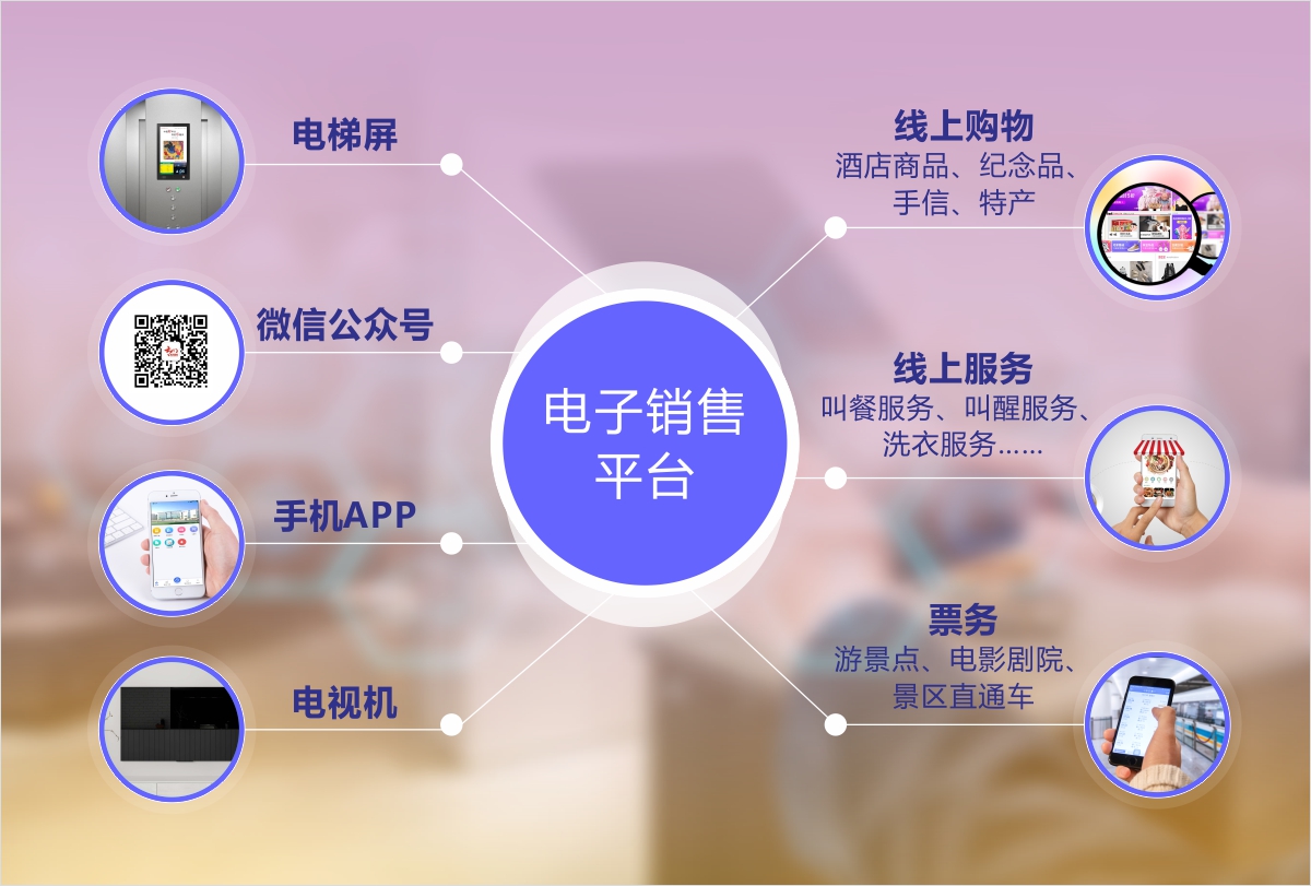 通過手機APP、電梯屏、微信、電視等平臺搭建線上O2O服務(wù),把酒店打造成所見即所購的消費中心。還能融合周邊購物中心、美食、景點等,在客戶入住期間廣告導(dǎo)引,提升客戶服務(wù)體驗,同時為酒店提供延伸跨界消費新渠道,增大盈利。