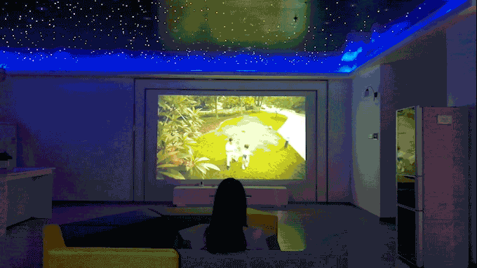 辛苦工作了一天,回家就要享受和家人在一起的時(shí)光。放下手機(jī),和家人一起窩在沙發(fā)上看場(chǎng)電影。按下多功能液晶面板上的影院模式,所有視聽(tīng)設(shè)備將一一啟動(dòng),窗簾自動(dòng)關(guān)閉,燈光、空調(diào)自動(dòng)調(diào)至最佳觀影模式。