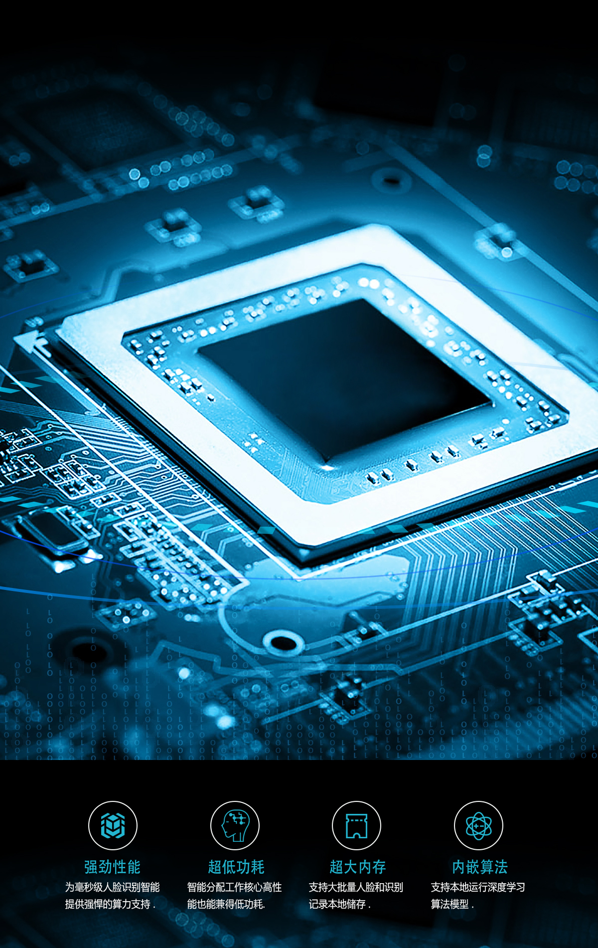 基于采用bigLittle架構(gòu)的64位六核心處理器。配合本地識(shí)別算法,可擁有接近“服務(wù)器”級(jí)別的人臉識(shí)別體驗(yàn)。