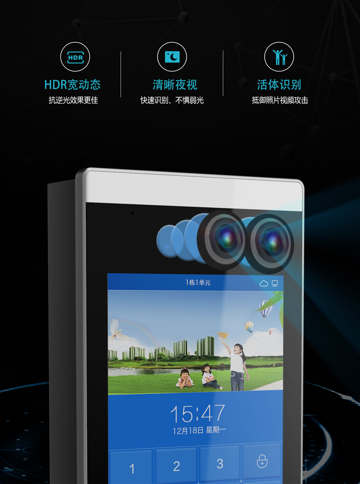 高解析力彩色鏡頭+大像素紅外鏡頭。白天細(xì)膩,暗光清晰。配合HDR功能,輕松應(yīng)對(duì)各種大光比環(huán)境。不僅如此,活體識(shí)別功能更能抵御各種偽裝攻擊,提供全面安全保障。