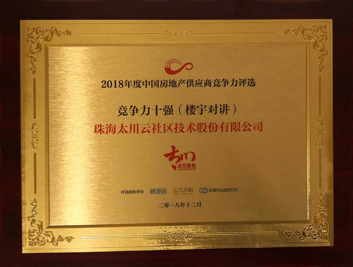▲太川股份榮登房產(chǎn)供應商“競爭力十強”