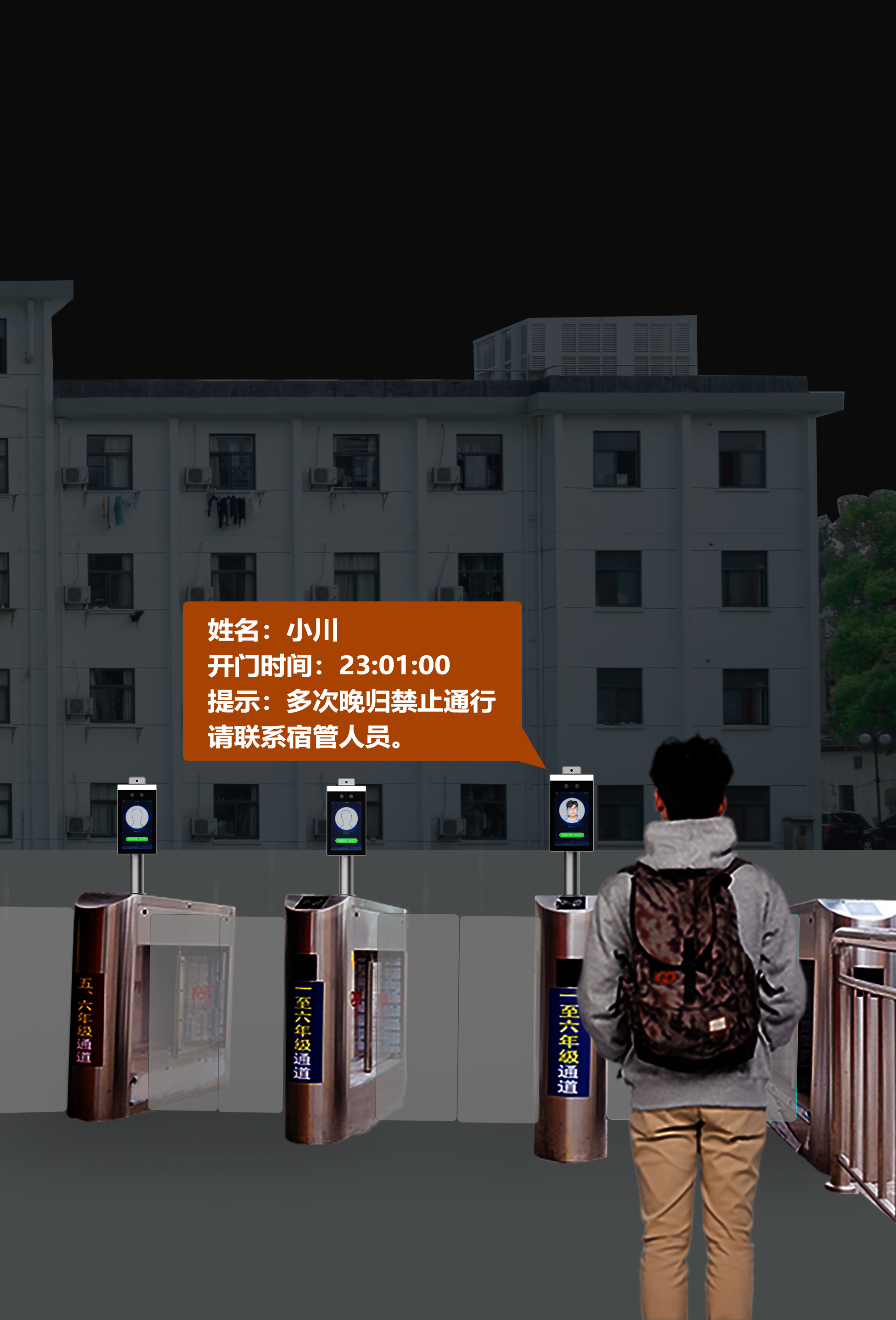 例如,對(duì)接校園宿舍管理系統(tǒng),利用人臉對(duì)比技術(shù),對(duì)進(jìn)出宿舍人員進(jìn)行無感管控,自動(dòng)記錄學(xué)生進(jìn)出宿舍記錄,以及統(tǒng)計(jì)學(xué)生歸寢情況,對(duì)晚歸未歸人員進(jìn)行告警提醒。還能設(shè)置黑名單布控,陌生人告警等功能。