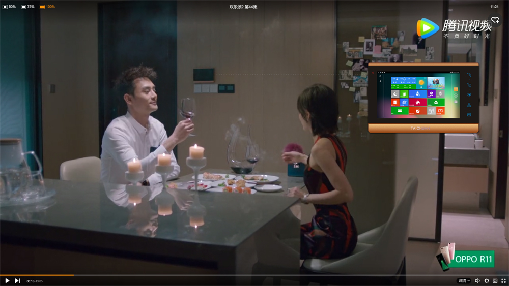 歡樂(lè)頌第二季44集,在萬(wàn)科上海天空之城的樣板間(拍攝地),趙啟平和曲筱綃的燭光晚餐上,太川股份Z1款智能家庭終端赫然墻面。在這樣一個(gè)簡(jiǎn)約現(xiàn)代的居住空間,Z1款室內(nèi)機(jī)和整個(gè)環(huán)境相得益彰。