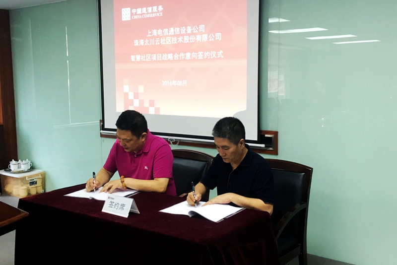 8月24日,珠海太川云社區(qū)技術(shù)股份有限公司與中國通信服務(wù)股份有限公司上海電信通信設(shè)備公司,簽訂“智慧社區(qū)項目戰(zhàn)略合作意向”,太川股份董事長黃偉雄先生出席簽約儀式,自此,以上海為中心,太川股份與中國通信服務(wù)的合作正式拉開序幕!