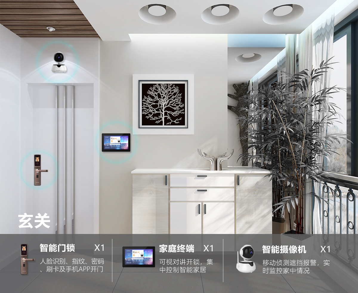 玄關:智能門鎖+室內(nèi)機+ 智能攝像機