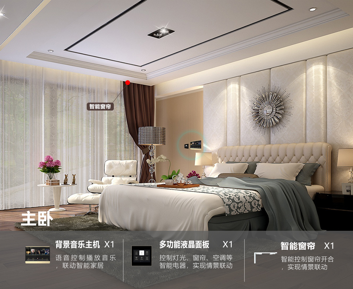 主臥:多功能液晶面板+背景音樂+智能窗簾