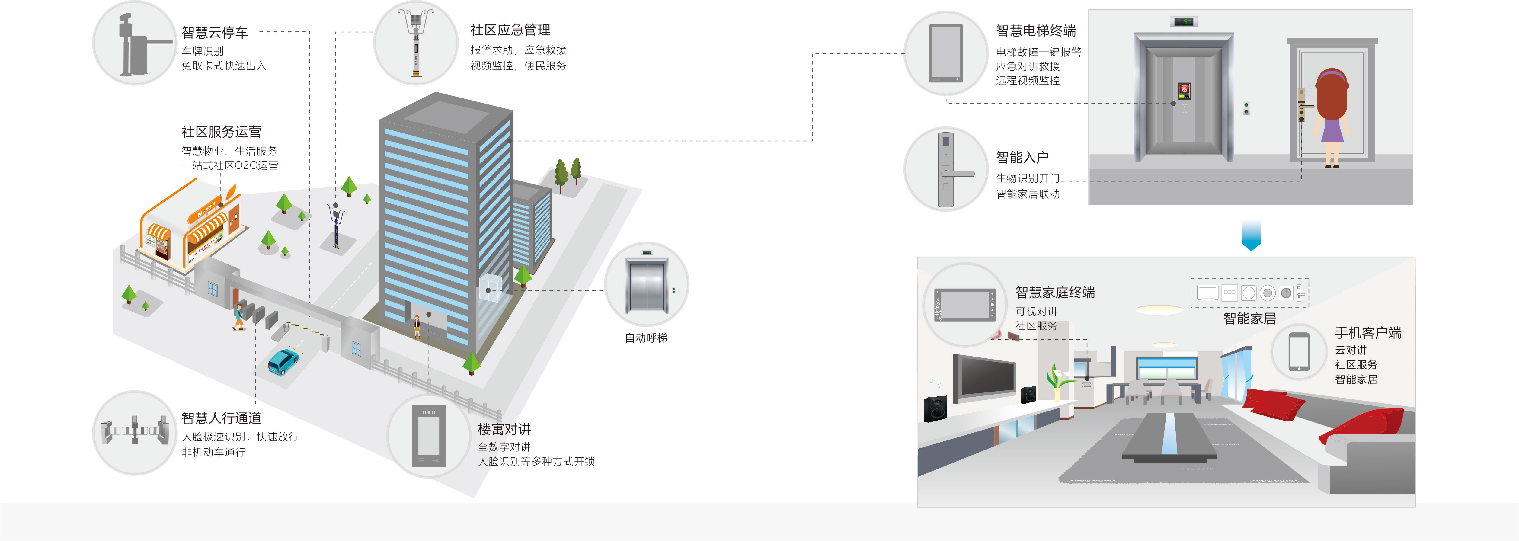平安幸福社區(qū):樓寓對(duì)講、智慧人行通道、智慧云停車,享受平安社區(qū)。